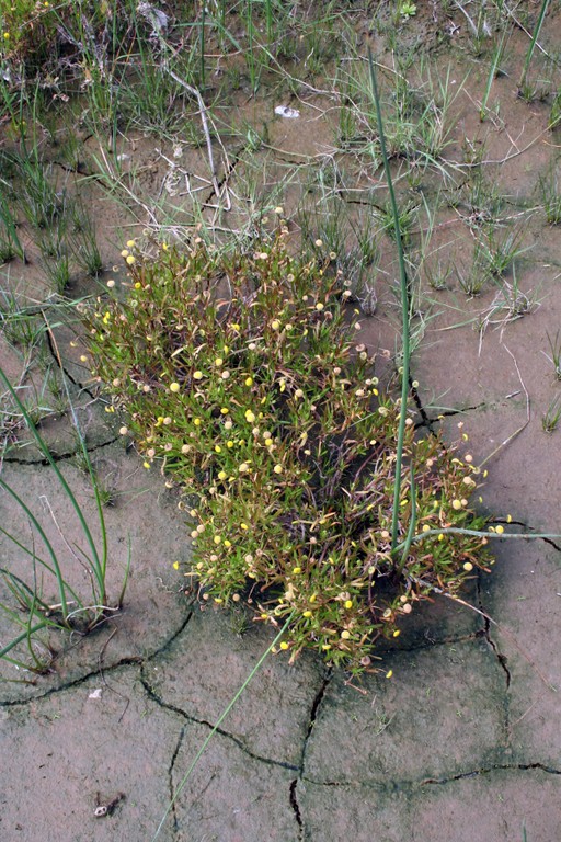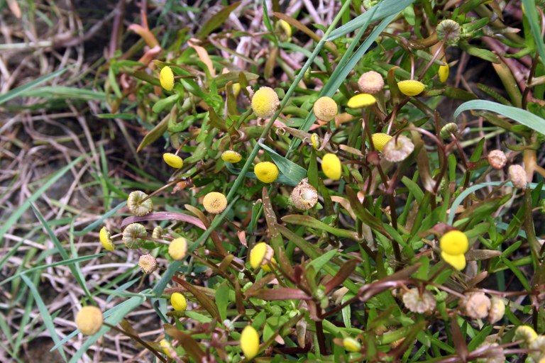 Planta herbácea anual, estolonífera, que puede alcanzar hasta 30 cm de altura. Hojas alternas, enteras o irregularmente dentadas o lobuladas. Florece en primavera y verano (de marzo a agosto). Las flores, tubulares y de color amarillo, se agrupan en capítulos pedunculados. Sus frutos son aquenios carentes de vilano. Se propaga principalmente por semillas, pero también puede hacerlo de forma vegetativa.