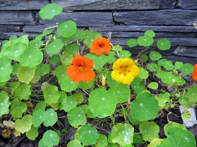 Planta herbácea anual o perenne, reptante o trepadora. Hojas casi circulares con un largo peciolo. Florece en primavera y verano (mayo a septiembre). Flores de coloración anaranjada, amarillenta o rojiza. Se propaga por semillas y de forma vegetativa a través de los brotes de sus raíces.